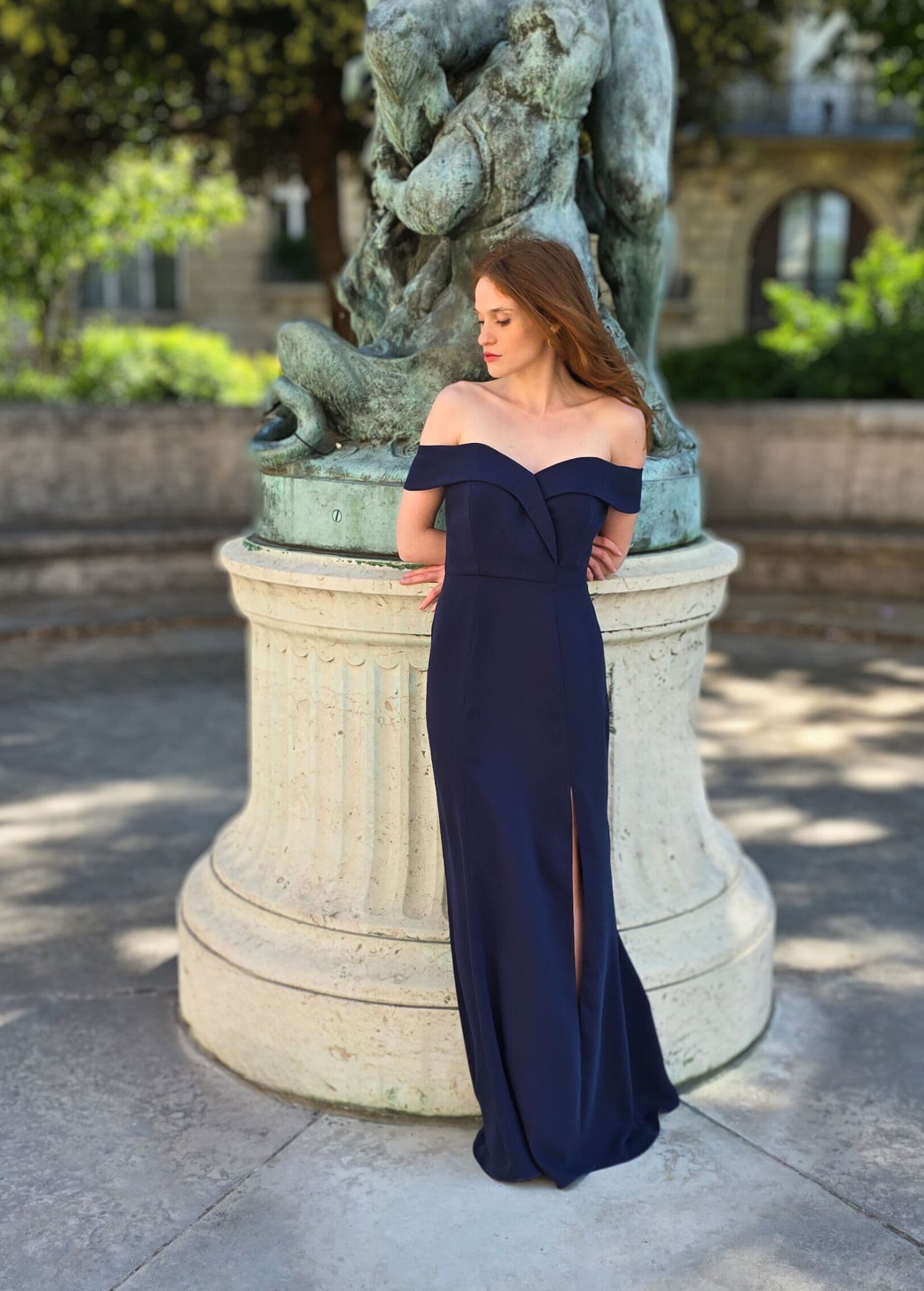 Robe bustier longue Col bateau Fente sur le côté gauche Baleines pour soutenir la poitrine Fermeture invisible sur le...